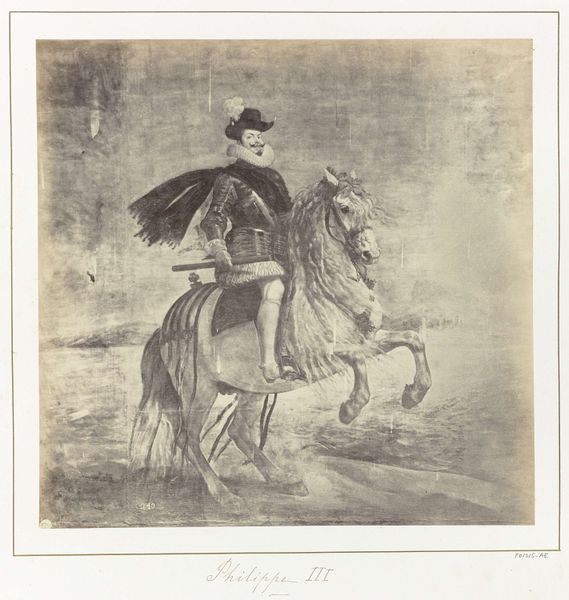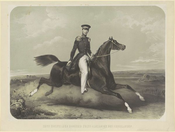 Curator: What strikes me about this portrait, beyond the depicted opulence, is the drawing itself. Editor: So, this is "Equestrian Portrait of Alexander I, Prince of the Netherlands" by Charles Rochussen, sometime between 1835 and 1894. It’s graphite and pencil on paper and, honestly, quite impressive. It has an almost photographic clarity but you're focused on the "drawing itself." Could you elaborate? Curator: Consider the economic landscape when this drawing was likely produced. Graphite and pencil were increasingly available but still valuable commodities. Rochussen, by using these relatively accessible materials to depict Prince Alexander, engages in a fascinating dialogue about representation and access. Editor: Interesting... the contrast between the noble subject matter and what was quickly becoming commercial material. Is this something Rochussen was known for? Curator: We see here the academic art tradition merging with an emerging consumer culture. What was Rochussen saying about the subject's power through the choice of readily accessible material? Or maybe how art production democratizes by enabling new production of an aristocrat's image for burgeoning public consumption? What effect does this potentially have on the consumption of art and the aristocracy? Editor: It kind of flips the idea of who art is for, right? It’s not just for the wealthy elite anymore, but a product that could, conceivably, be disseminated more widely. It changes the value and perception of both the image and the man. Curator: Precisely. It encourages us to consider not just what is depicted but how it's depicted, and what that reveals about the social and economic currents of the time. The artist uses material choices to subtly challenge traditional hierarchies. Editor: I hadn’t considered the material having so much to say about power dynamics! It really shifts the focus of how to look at and understand the work. Curator: Indeed. By examining the material conditions of art production, we uncover deeper layers of meaning and engage with the complex interplay between art, labor, and society.