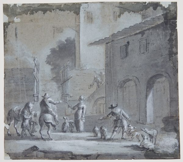 Editor: Here we have Isidore Pils' "Auteuil, 1870", a watercolor painting. The soldiers in the scene seem almost… worn, maybe resigned. What strikes you most about this piece? Curator: Well, focusing on the material realities, it's fascinating to consider the production of this image in the context of the Franco-Prussian War. Pils, an established academic painter, chose watercolor - a relatively quick and portable medium. Why not a grand history painting on canvas? Editor: Maybe he wanted to document a grittier, more immediate view of the war than what official commissions allowed. Curator: Exactly. Watercolor allowed him to respond rapidly, blurring the lines between high art and reportage. Look at the unfinished quality of the background. Is that laziness, or is it a deliberate commentary on the disruptive nature of conflict, the way it tears apart established structures – artistic conventions included? Editor: I see what you mean. And the materials themselves – the pigments, the paper – become almost like evidence. Do you think Pils was deliberately questioning academic painting traditions? Curator: Absolutely. The accessibility of watercolor versus the expensive, time-consuming nature of oil painting is crucial. He’s engaging with the socio-economic realities of artistic production and consumption. He democratizes image making by employing the watercolour, placing himself on the side of ordinary people during war. What’s left out of history painting are, after all, these resting moments that are full of anticipation and mundane boredom. Editor: It’s interesting how focusing on the materials and context really shifts how you interpret the painting’s meaning. Curator: Precisely. Considering artistic production alongside socio-historical contexts always gives a fresh vision to understanding any piece.
