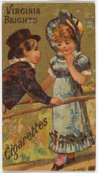 This is "Charlie's Pet," a chromolithograph from the Household Pets series, created by Wm. S. Kimball & Co. The composition immediately draws you in with its interplay of textures and lines. The artist uses a variety of visual elements to convey a sense of depth and material presence, from the ruffled sleeve to the corset, contrasting with the relatively smooth background. This card exists within a nexus of signs: the name "Charlie" with the term "Pet" hinting at class dynamics in a tongue-in-cheek manner. The dandy-like man and the woman's attire signal to a specific social milieu. The artist invites us to decode these visual and cultural cues. This artwork disrupts conventional codes of representation, inviting us to reflect on the fluidity of meaning and the multiple layers of interpretation embedded within even the most unassuming of images.
