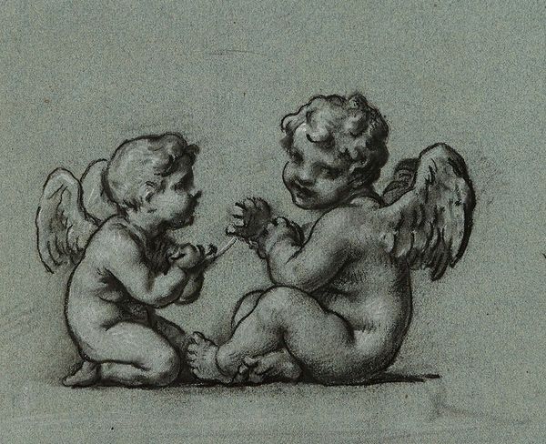 Jessie Willcox Smith rendered this print of an angel at an unknown date. Smith, a prominent female illustrator during the late 19th and early 20th centuries, created this artwork during a time when women were making significant strides in the arts, yet still faced considerable gender biases. The image features an infant-like angel set against a serene blue backdrop, blending themes of innocence and spirituality. The softness of the angel's features contrasts with the sharp lines of its wings, evoking a sense of vulnerability. Smith was known for her illustrations of children, she celebrated childhood as a symbol of hope and purity. The choice of an androgynous figure invites viewers to transcend traditional gender roles, offering a vision of a more inclusive spiritual realm. Through this evocative piece, Smith offers a space for contemplation on innocence and hope, challenging the viewer to embrace a vision of purity beyond societal constraints.
