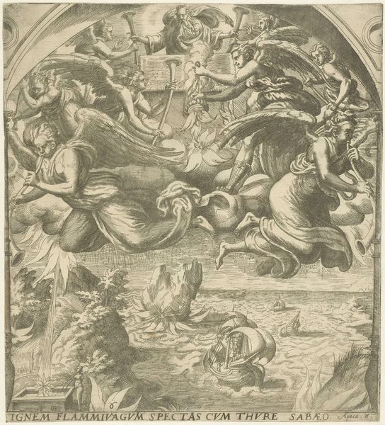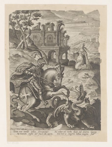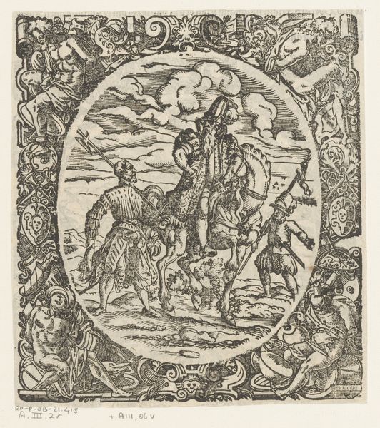 This 16th-century print, titled "Conversion of Paul," was created by an artist known only as Monogrammist A. The work captures a pivotal moment from the Bible when Saul, a persecutor of early Christians, is dramatically converted on the road to Damascus. The image is striking: a blinding light from the heavens throws Paul from his horse. This moment, full of divine intervention, challenges traditional representations of power and authority. It suggests that transformation can come unexpectedly, disrupting established hierarchies and individual intentions. Consider how religious narratives, such as the conversion of Paul, often served as a means to reinforce or question social norms. The emotional intensity of this scene invites viewers to contemplate the nature of belief, doubt, and the potential for radical change. How do you respond to this depiction of sudden enlightenment?