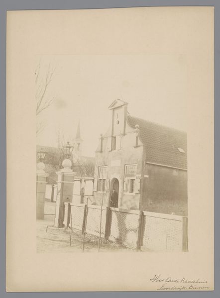 This photograph, "Gezicht op de synagoge te Zwolle", by an anonymous photographer, presents a view of the Zwolle synagogue with a keen eye for form and structure. The composition, dominated by the synagogue's facade, is a study in geometric balance. Notice how the strong horizontal line of the roof contrasts with the verticality of the walls and windows, creating a grid-like structure. The building's mass is further articulated by the subtle play of light and shadow across its brick surface, lending depth to the facade. The muted tones and the texture of the photographic print itself contribute to a sense of historical distance. This is not merely a building but a cultural artifact represented through the lens of a particular time and technology. The photograph invites us to consider how architectural spaces embody cultural memory, and how their visual representation shapes our understanding of history.