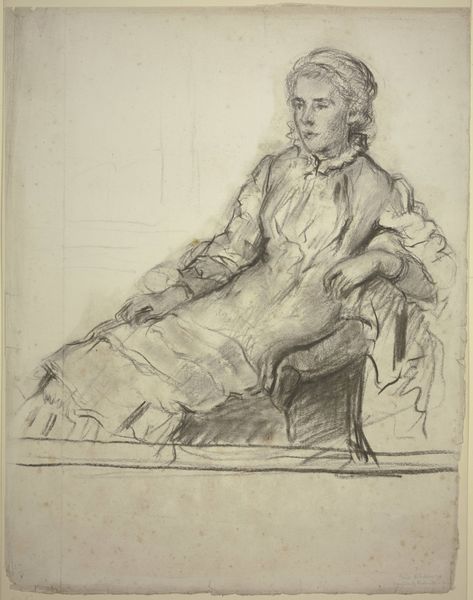 Eastman Johnson’s portrait of Mrs. Jeremiah Chandler presents a study in charcoal and graphite, focusing on the textures and tones that define her presence. The composition is deliberately straightforward, inviting us to examine not just the likeness, but also the underlying structure of representation itself. Johnson masterfully uses line and shadow to articulate form, from the delicate lace of her cap to the soft folds of her dress. The subtle gradations in tone create a sense of depth and volume, while the restrained palette directs our attention to the interplay of light and shadow across her features. This portrait, like many of its time, employs a formal language of respect and dignity. The artist's formal control reminds us that portraiture is never merely a replication of reality. It's a construction, a carefully orchestrated arrangement of lines, tones, and textures that speaks to the power of visual language in shaping our perceptions.