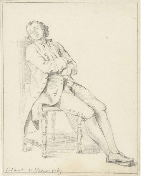 Wilhelm Marstrand made this drawing of a seated peasant with a pipe. He used graphite on paper, a traditional art material combination that allows for fine detail and subtle shading. The artist's hand is evident in every line, carefully rendering the texture of the man's clothing and the contours of his face. The choice of graphite allows for a range of tones, from the light, airy feel of the background to the more solid, grounded presence of the figure. The marks of the graphite create a sense of depth and volume, giving the peasant a tangible, three-dimensional quality. The drawing is more than just a representation; it's a document of labor, class, and social context. It challenges the traditional distinctions between fine art and craft. It emphasizes the importance of materials, making, and context in understanding the full meaning of an artwork.