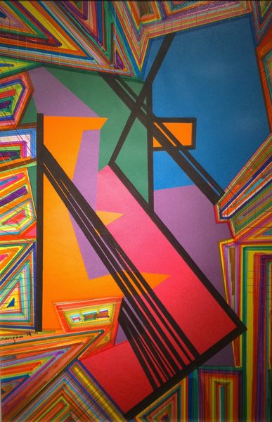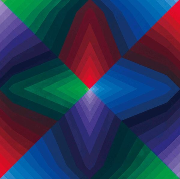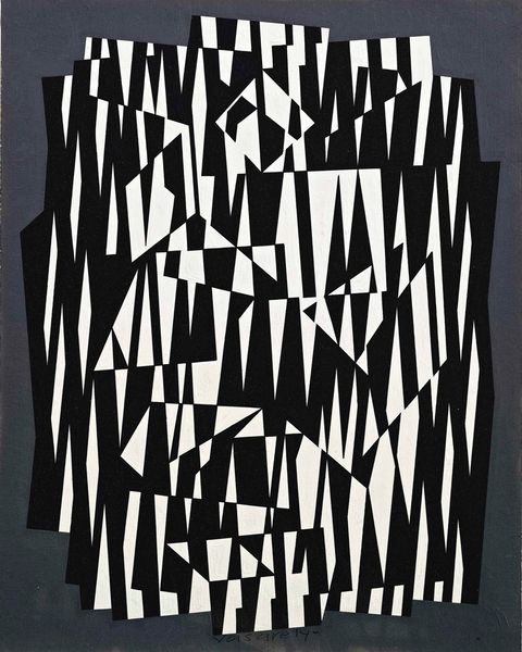 Editor: So, this is Vasarely’s *TZALOKA*, created between 1982 and 1985. It’s a mixed-media piece using tempera and acrylic. I'm really struck by the optical illusion and how the shapes seem to vibrate. How would you interpret this work, particularly considering Vasarely's broader artistic aims? Curator: Vasarely was a key figure in Op Art, and this piece exemplifies the movement's focus on how perception is culturally conditioned. It is geometric abstraction. Consider how these illusions challenge our understanding of space, line, and color. What role do you think the title, "TZALOKA", plays? How might a viewer unfamiliar with Op Art initially react to this piece compared to someone familiar with its history and context? Editor: That’s a great question about the title - it seems like Vasarely made that name up. And someone unfamiliar with Op Art might dismiss this as just a pattern. For me it's an overwhelming and maybe slightly unsettling effect. Is there a political or social message behind these perceptual games? Curator: Many argue that Op Art aimed to democratize art by making it accessible to a wider audience, free from the need for specialized knowledge. It directly engages the viewer, blurring the lines between observer and art. Vasarely's work, in particular, aimed to create a universal visual language. What I find compelling is the idea that abstract art could be a force for social change, that challenging perception can, in turn, challenge societal norms. But I would ask you, to what extent do you find it does challenge you? Editor: I never considered that connection before. It’s interesting to think about how visual disruption can be a form of questioning authority or established ways of seeing the world. That opens a new way to view Op Art as a challenge. Curator: Exactly. Seeing it less as merely decorative but part of broader discussions. It also provokes thought around the institutions that support art production. These abstract geometric forms, in their original time, offered new challenges to perception in a gallery context and perhaps also the role that imagery plays. Editor: I’ll definitely remember this conversation! It’s provided some very interesting context. Thanks!