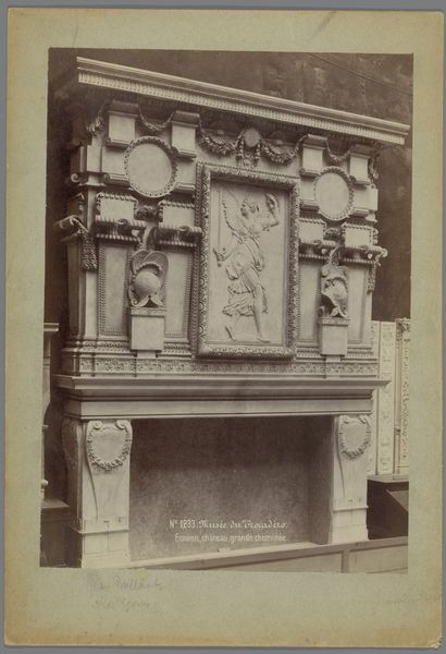 These two fireplace photographs were created by Johannes Gerardus Kramer in Groningen. The craftsmanship of these fireplace mantels stands out. They are made from carved wood, likely by skilled artisans, showing detailed ornamental motifs, architectural forms and mythological figures. The fireplaces' material and methods of production are central to their presence. Wood gives them a sense of warmth. The texture of the carved surfaces adds depth, playing with light and shadow. The fireplaces are heavy, stable constructions, showing the cultural importance of the hearth as the home's heart. The labor-intensive process of carving and assembling these elements means they were only accessible to the affluent. In their time, these fireplaces represented more than just sources of heat; they showed power, status, and the intersection of artistic skill and material wealth. Appreciating the fireplaces requires us to consider the skilled work that went into their making.