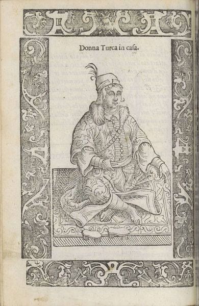 Curator: This is "Novi, ou Fille Grecque dans la ceremonie du Mariage," plate 69 from "Recueil de cent estampes representent differentes nations du Levant." It’s a print made sometime between 1714 and 1715, by Jean Baptiste Vanmour, currently held in the collection of the Metropolitan Museum of Art. Editor: My first impression is one of serenity. The composition, the pose of the girl... there’s an almost unnerving calmness to it. The stark contrast of light and shadow contributes, too, giving a dramatic yet intimate feel. Curator: Vanmour was a key figure in disseminating images of the Ottoman Empire throughout Europe in the 18th century. These prints, published as a collection, offered a visual encyclopedia of the different peoples, customs, and costumes of the Levant. This one, as the title suggests, depicts a Greek girl in a marriage ceremony. Editor: The girl’s headdress immediately draws my attention. Its almost architectural quality speaks to a whole range of cultural symbols related to weddings and what the change of social status means. Consider, too, the object in her hand; it might reveal something special. Curator: These depictions, however, were not simply ethnographic records. They were shaped by European perspectives and the demands of the art market. The "Orient" was often romanticized and exoticized to satisfy European fascination and fantasies. Editor: And you can see that exoticism in the details of the opulent fabrics, but also the window looking to an indeterminate landscape in the distance. It makes you consider the place of women at the time: that dichotomy between the indoor, and perhaps restricted, domestic space versus the world outside. I imagine that this piece would have stirred both interest and perhaps discomfort in European society. Curator: Certainly. It is important to examine these images with a critical eye, recognizing their role in constructing a particular narrative about the East that served European interests and biases. The series offers insights into 18th-century cultural exchange, and the power dynamics inherent in representing other cultures. Editor: Looking closer, what stays with me is how symbolic this work seems, capturing the hopes and anxieties that come with beginnings. Curator: Absolutely, this image represents how the European understanding of the "Orient" continues to develop over time, solidifying certain views along the way.