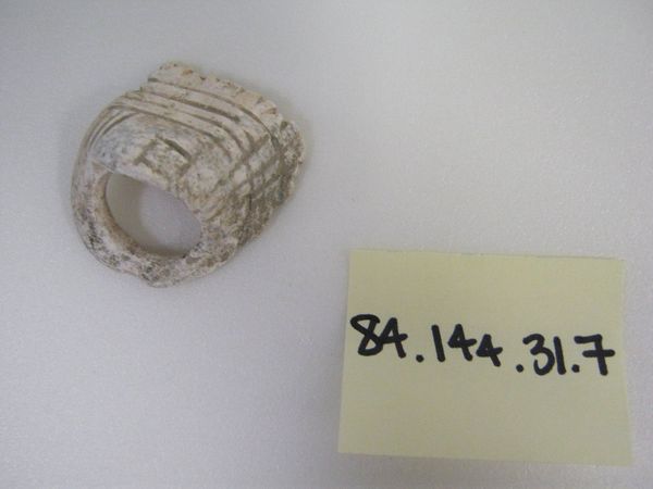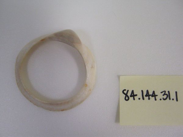 This small clay ring was made by an anonymous artist, at an unknown time. Its modest scale belies its potential significance as a cultural artifact. Without knowing the place and period of its creation, it's hard to say what its meaning would have been. The incised lines suggest surface decoration, but could also represent a social or political emblem. Was the ring purely ornamental, or might it have served some practical purpose? Its presence in a museum like this one raises questions about institutional collecting practices, and the value we place on objects from the past. What social conditions allow for the preservation of such an object? The work of the historian is to try to understand the context of the artwork, including such factors as geography, religion, social class, and economics.