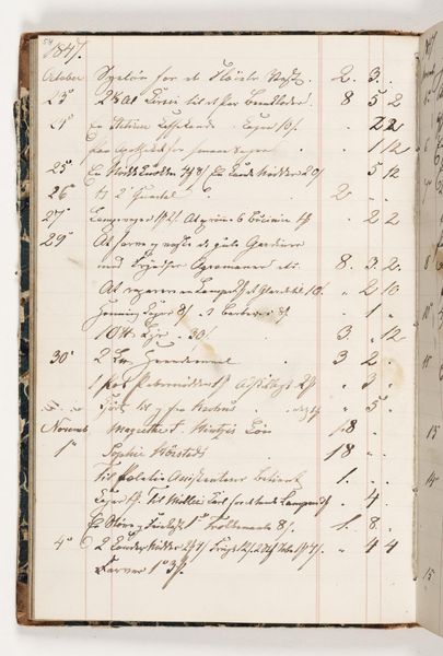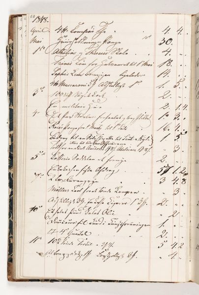 This is Martinus Rørbye's 'Regnskab 1848', a page from an account book penned in the year of revolutions. The dominant visual symbol here is the written word itself, a meticulous record of daily transactions. Like ancient runes, each stroke and flourish carries a weight of meaning, not just economic, but also cultural and personal. We see the influence of the past in the book's columns and precise notation. The impulse to record, to account, echoes through time, from the clay tablets of Mesopotamia to the digital ledgers of today. Consider how the act of writing has always been imbued with power, from sacred texts to revolutionary manifestos. The careful accounting of these mundane expenses speaks to a human desire for order amidst chaos, a need to impose structure on the ephemeral flow of life. The hand of the artist, usually dedicated to capturing light and form, is here devoted to the humble task of balancing the books. The writing bears witness to an evolving, non-linear tradition of record-keeping.