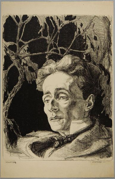 Curator: This is Clare Leighton's portrait of Ernst Toller, a wood engraving. It presents a striking image, doesn't it? Editor: Yes, the stark contrast between light and shadow immediately commands attention, creating a palpable tension in the composition. Curator: Toller was a prominent figure in the German Revolution, later exiled with his work suppressed. Leighton, as a politically conscious artist, likely chose this medium to reflect the harsh realities of Toller's life. Editor: Absolutely. The sharp, angular lines contribute to a feeling of unease, almost as if the image itself is resisting legibility, much like Toller's voice being suppressed. Curator: Leighton, being a woman artist, gives us a glimpse into the politically turbulent interwar period and intellectual circles through her unique lens. Editor: Agreed. The somber mood, the dramatic chiaroscuro, it all coalesces into a powerful statement about the precariousness of freedom of expression. Curator: Precisely. The artwork allows us to contemplate the role of art in reflecting and challenging social and political realities. Editor: Indeed, a masterclass in how form can amplify historical context.