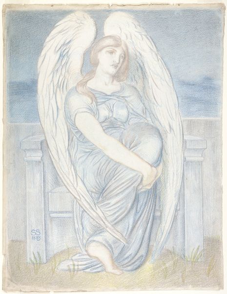 Curator: Here we have Frederick Hollyer’s evocative piece, “The Creation I." The work doesn't have a firm date associated with it, but Hollyer was active from 1838 to 1933. Editor: My first thought is ethereal; she's like a pre-Raphaelite vision, cradling the world itself. How heavy do you think that globe is? Curator: Probably light as a thought, all things considered. I feel the piece embodies a tender, almost maternal creation. Editor: Or is it more about the *re*-presentation of creation? Hollyer was known for his photographic reproductions of paintings. Curator: Perhaps, but in creating a new image, he still captures the mystery of it all. It pulls you in, doesn't it? Editor: It does. It makes me wonder about the labor behind it, and the social context of image production at the time. The hand in service to the divine—or the market? Curator: Now, that's a thought that makes me look at those wings differently. Editor: Exactly! So much is wrapped up in the making and seeing. Curator: Well, I think we've both made something new here today! Editor: Indeed. Let's see what the next artwork brings.