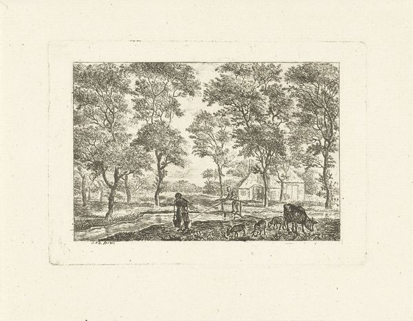 This landscape with fishermen was made by Jacob Cats around the late 18th century using etching, a printmaking technique that democratized image production at the time. To create this image, Cats would have coated a metal plate with wax, drawn his composition with a stylus to expose the metal, and then submerged the plate in acid. The acid bites into the exposed lines, creating grooves that hold ink. After removing the wax, the plate is inked, wiped clean, and then pressed onto paper, transferring the image. The etched line is notable for its relative ease and freedom, allowing for the creation of fine details and tonal variations through hatching, as we can appreciate here. The choice of etching speaks to a rising demand for affordable art, aligning with the burgeoning merchant class and a shift towards accessible imagery. Instead of a unique painting, the artist makes work that can be endlessly reproduced and consumed.