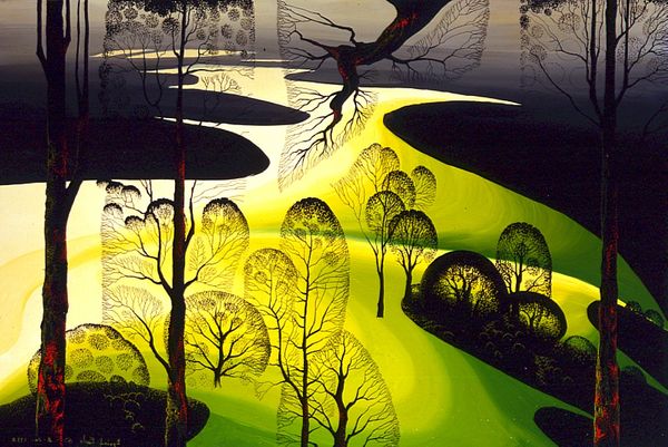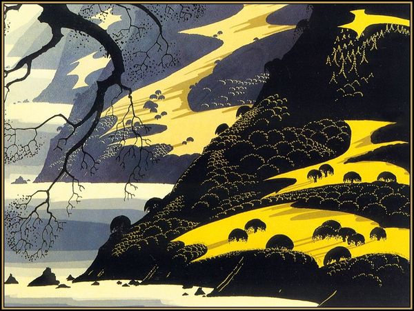 Eyvind Earle created this landscape, Gray Coastline, sometime in the 20th century. Earle's simplified landscape aesthetic is rooted in the Regionalist landscape painting style of the 1930s, but has also been compared to 15th century tapestry design. What's interesting is how Earle's work gained popular recognition through his background paintings for Disney in the 1950s, particularly for Sleeping Beauty. Here, we might think about the visual codes associated with fairy tales. What does it mean to render a landscape as a backdrop, or as a setting for fantasy? How is Earle using visual language to create a mood? As art historians, we look for the ways that Earle’s artwork is situated in a specific social and cultural time. We study the art market, the museum system, and other venues of display to show how these institutions shaped art. Through these resources, we can better understand the meaning of art as something contingent on social and institutional context.