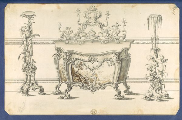 This drawing of a cartouche is made with pen and ink, with a gray wash on laid paper. The delicate rendering gives an impression of stone carving, complete with swags and cherubs. It probably served as a design for architectural ornament, perhaps intended to be executed in plaster. The drawing is a study, rather than a finished work in itself. Note how the artist has used the gray wash to model the forms, suggesting light and shadow, and carefully rendering the textures of the drapery and musical instruments. The effect is one of three-dimensionality, as if we are looking at a real object rather than a flat drawing. Consider the skilled labor involved in both its production and the imagined carving. Drawings like this were essential to coordinating the labor of workshops, translating ideas into material form. Appreciating the processes of design and making allows us to understand the broader economic and social context in which artworks are created.