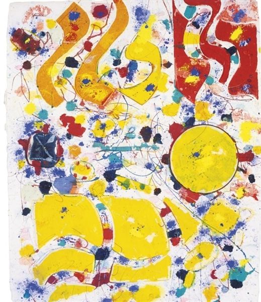 Sam Francis made *Light in Itself*, a work that seems to explode with energy, like a painterly big bang! The eye is immediately drawn to that big yellow square, bisected by a vertical stripe of intense blue. This isn't just flat color; you can almost feel the texture, the built-up layers that give the colors such depth. The paint is both thin and thick, transparent and opaque. Splatters and drips of red, blue, pink, and yellow dance around the central forms, creating a sense of movement, as if the painting is still in the process of becoming. There's a fantastic tension between control and chance, order and chaos. That one thin line of black paint to the left of the big yellow square, it's as if he flicked the paint off the brush with his wrist, these little details make the painting, for me. Francis's approach reminds me a bit of Joan Mitchell, both artists were interested in how to express feeling through abstract forms. It's not about representation, but about the pure experience of color and the act of painting itself.