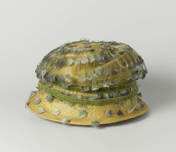 This is a pottery terrine with a lid in the shape of a bunch of grapes, created by De Porceleyne Byl. The eye is immediately drawn to the texture and form. Round, almost spherical shapes of the grapes contrast with the more angular form of the leaf-shaped plate. The use of glazed earthenware is quite interesting; it gives a smooth, tactile quality to the piece. The purple color of the grapes is rich and deep, and the way it reflects light adds to the overall visual appeal. The artist has destabilized our perception of everyday objects, blurring the boundaries between functional items and artworks. This terrine exemplifies how an object can transcend its utility and become a focal point for aesthetic contemplation. It engages with the viewer on multiple levels by asking us to think about the interplay between form and function, the natural and the artificial. The structure of this terrine invites continuous interpretations and reassessments of its significance.