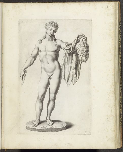 Editor: This is "Standbeeld van Amor," or Statue of Cupid, created by Cornelis Bloemaert sometime between 1636 and 1647. It’s an engraving on paper, currently held at the Rijksmuseum. It depicts a nude Cupid figure, wings and all, almost like a classical sculpture. It has quite a muted, stone-like quality due to the use of ink. What's your interpretation of this work? Curator: Let's consider the material reality. This is an engraving. Think about the labour involved, the craftsman meticulously using a tool to carve into a metal plate. Ink is then applied, pressed onto paper. It's a process of reproduction, making Cupid – usually associated with aristocratic love – available on a mass scale. The Baroque period was deeply concerned with spectacle, but also with dissemination. Editor: That’s interesting. So it's less about the artistic vision of one person, and more about a collaborative, reproducible process? Curator: Precisely. Think about who is consuming these prints. Are they wealthy collectors or a burgeoning middle class seeking access to classical themes? And how does the act of engraving, this specific technique, influence the reception of Cupid? Is he de-romanticized, perhaps even commercialized, through this material process? Editor: So, by examining the means of production and distribution, we see how even a classical figure like Cupid can become a commodity reflecting shifts in social class and accessibility. Curator: Absolutely. It is through understanding the material processes involved that we are better able to engage with this Baroque piece. What did you think of this approach? Editor: Thinking about it this way helps reveal so much more about the artwork beyond just its surface appearance. It gives an entire new, socioeconomic context. Thank you.