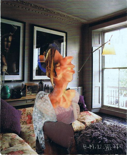 Nancy Andrews created this gelatin silver print, "Kevin Byrd," and immediately, we’re struck by the composition. The Dalmatian-spotted Great Dane dominates the foreground, its massive form cropped, leading our eye to the human figure seated in the background. The high contrast of the dog, the texture of the wooden interior, and the stark light filtering through the windows all contribute to the photograph’s dynamic tension. Andrews cleverly destabilizes the traditional portrait. The human subject, almost an afterthought, is overshadowed by the animal, challenging our expectations of significance and foreground versus background. This displacement forces us to reconsider the semiotic relationship between human and animal, sitter and setting. The dog's fragmented presence disrupts any conventional reading, opening the photograph to broader interpretations about perspective and what we prioritize in representation. Consider how the seemingly casual arrangement of objects—portraits on the mantle, a potted plant—contribute to a layered, almost surreal narrative. Andrews invites us to decode the underlying structures of domestic space and question the cultural codes embedded within.