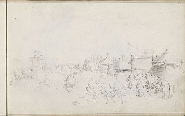 Curator: Here we have "St. Knud's Church in Odense Seen from Munkemose," a pencil drawing executed in 1846 by Christen Købke, currently residing at the SMK – Statens Museum for Kunst. Editor: It strikes me as almost dreamlike, this scene. So delicately rendered, as though the artist wanted to capture a memory fading at the edges. Curator: Købke was deeply engaged with depicting the everyday life and landscapes of Denmark, imbuing them with a quiet sense of nationalism. This work reflects a broader trend within Danish Romanticism where focus shifted onto ordinary life. How did the image play into national consciousness at that time? Editor: I think its power lies in its seeming simplicity. On one hand, it presents the familiar, the accessible. A quiet, unassuming place in Denmark. But also its restraint is deceiving, this landscape aesthetic also touches on Romanticism with the cathedral representing a place and form that would be central to everyday social life. It makes it clear, this place, this community is under watch of power—religious or secular? I ask myself, did Købke appreciate or question these historical underpinnings? Curator: That’s a compelling point. Købke's technical skill here cannot be understated; look at how he uses subtle gradations in pencil to evoke a sense of atmosphere and depth. His understanding of perspective brings the church forward, anchoring the background. I wonder, how much was he intentionally staging these settings, aware of his control within the creative space? Editor: Exactly! And while we admire his artistic prowess, it's essential to view this "romantic" landscape within its societal structure of the era. In what ways might he reflect—or challenge—the Danish social codes of his time? How are we implicated by this seemingly neutral work? Curator: Indeed. "St. Knud's Church" then is both an intimate sketch and a powerful symbol, a quiet declaration of place that beckons us to contemplate its significance in the unfolding narrative of Danish identity. Editor: So while visually stunning in its subtle romantic tones, the real beauty lies in its invitation, this drawing pushes us toward an evolving and critical examination.