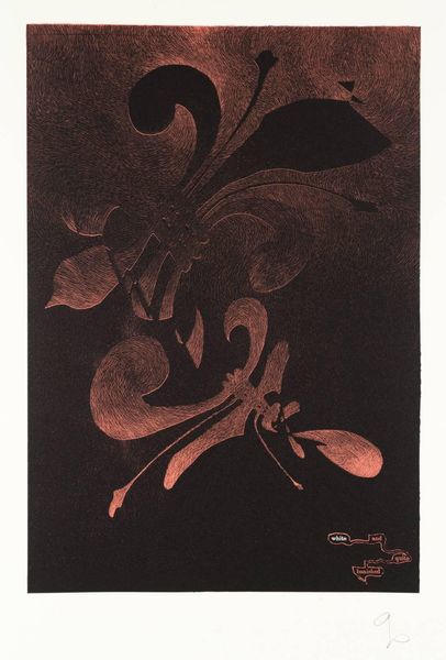 Curator: The Tate presents "Canto XVII," an untitled work by Esq Tom Phillips. Composed of layered imagery, this print measures just over 28 by 20 centimeters. Editor: It looks like a serpent coiling, almost suffocating under layers of symbolic weight. The colors are muted, but there's a subtle shimmer, like scales catching light. Curator: Phillips's practice often explores the intersection of text and image, deeply engaged with the cultural significance of both. His work is a conversation between form and meaning. Editor: Absolutely. You see these fragmented faces and claw-like shapes—they disrupt what might otherwise be pure pattern, adding a layer of violence. It feels like a critique of power structures embedded within these intricate designs. Curator: Perhaps. Or it could be Phillips reflecting on how history is always mediated, fragmented, never presenting a single, clear narrative. Editor: Ultimately, it's a powerful reminder that beauty can mask deeper, unsettling truths, and that art can challenge us to confront those complexities. Curator: A worthwhile consideration. The history of image-making invites many readings, doesn't it?