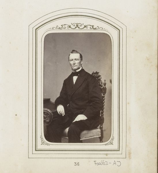 This photograph, "Portret van de heer D.H. Bosch", was taken by Albert Greiner in Amsterdam. It is a small portrait of a man in the formal attire of the 19th century. During this era, photography emerged as a powerful tool for constructing and preserving identity. The portrait captures the sitter in a moment of posed formality, embodying the values of respectability. The photograph speaks to the cultural norms around masculinity, class, and representation. How do such images shape our understanding of history and social roles? The subject's identity as "heer" or "Mister" Bosch hints at a certain social standing, reflecting the aspirations and self-image of the bourgeois class. Consider how the photograph engages with the historical representation of power, and the emotional impact the portrait may have on the viewer, given the sitter's apparent distance from contemporary life. Ultimately, this portrait raises questions about visibility, memory, and how we relate to the individuals and social structures of the past.