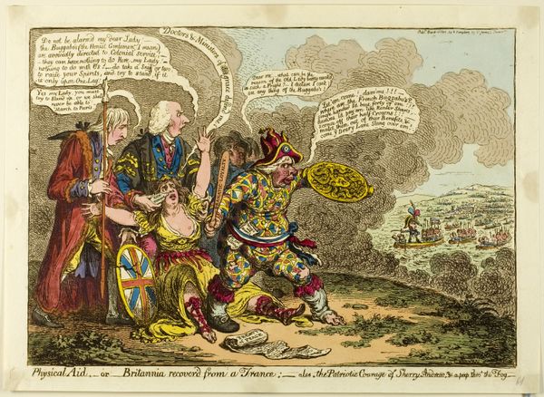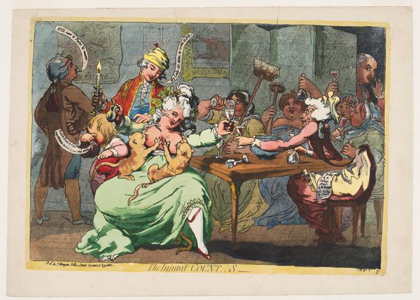 James Gillray created this hand-colored etching in England, likely in 1806. The print satirizes the Whig party's attempt to form a coalition government, which the artist ridicules as a farcical effort to appear dignified. Gillray uses caricature to mock the politicians. The exaggerated physical features and chaotic scene suggest incompetence and corruption. The title, "Making Decent," is ironic, highlighting the perceived hypocrisy of the "Broad-Bottomites." The print references the political climate of early 19th-century Britain, a period marked by shifting alliances and public distrust of politicians. Gillray's work reflects the growing power of the press and its role in shaping public opinion. Political prints like this one were widely circulated and debated, reflecting the era’s vibrant culture of political engagement. By consulting period newspapers, pamphlets, and personal papers, we can reconstruct the contexts of the print, and better understand the ongoing dialogue between political actors, popular opinion, and visual representation.