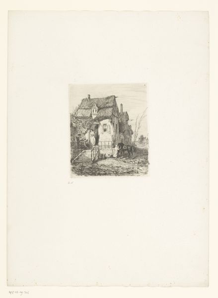 Domenico Quaglio created this etching of a gothic building courtyard sometime in the early 19th century. The technique of etching involves coating a metal plate with wax, scratching an image into the wax, and then submerging the plate in acid, which bites away the exposed metal. Here, we see the material quality of the etched line, precise and delicate, enabling fine detail in the architectural rendering and a full range of tonal values. Consider the labor involved in producing such a print – the skilled hand of the artist carefully manipulating tools to incise the image, the repetitive nature of pulling prints, each one a multiple of the original design. Prints like this one met a growing demand for affordable images in an era of expanding literacy and visual culture. Quaglio skillfully uses line and tone to evoke the grandeur of gothic architecture. Through this print, we can appreciate not just the image itself, but also the social and economic context of its production and consumption.