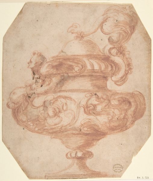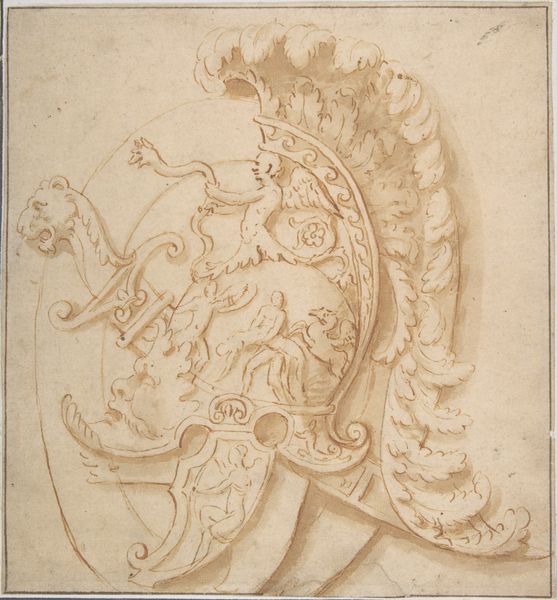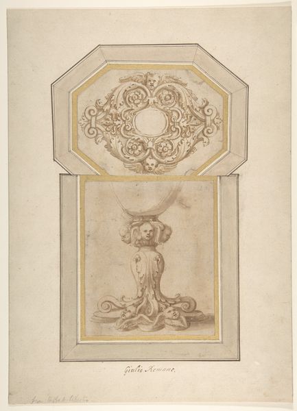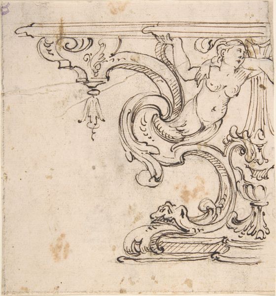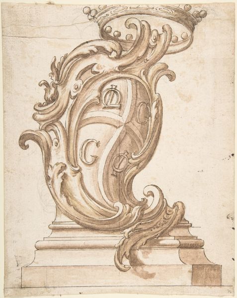 Editor: This drawing, "Design for a Cartouche with Two Putti Heads inside a Shell, Atop of an Arch," dating from sometime between 1700 and 1780, appears to be rendered in pencil, perhaps with watercolor washes. It’s really ornate and elaborate, almost excessively so! How would you interpret its purpose and meaning? Curator: Well, the Baroque period was all about that excess, wasn’t it? But beyond the aesthetic, I see this drawing as reflecting the socio-political structures of the time. The cartouche, traditionally used to frame inscriptions of power and lineage, here is dominated by cherubic figures nestled within a shell, and placed above a Roman Arch—a reference to historical military triumphalism. What does that tell us about the function of art and architecture for elites in the 18th century? Editor: It sounds like the ruling class wanted to visually assert authority and divinity. But is it really that simple? Curator: Exactly! These seemingly innocent cherubs are not merely decorative; they represent the perpetuation of dynastic power under the guise of religious or divine mandate. Consider also, that at this time many churches held great influence. How might this combination of secular triumphalism and sacred symbolism function to maintain societal hierarchies and suppress dissent? Editor: I guess it’s a reminder that art can be used to subtly reinforce ideologies. I hadn't really thought about the religious angle. It’s quite unnerving! Curator: Precisely! By exploring these complex historical and social layers, we start to uncover the ways in which artistic expression operates as an active participant in shaping cultural norms and reinforcing systems of control. Ultimately it makes us more conscious of the subtle rhetoric of visual culture today. Editor: It definitely reframes how I'll look at other works from this period. I see now how the visual and political landscapes are interconnected. Curator: And that's the beauty of art history.