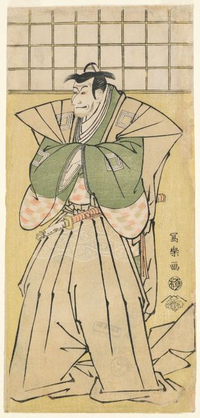 This print of Bandō Hikosaburō II, made by Ishikawa Toyonobu, is a woodblock print, a medium that speaks volumes about the culture of its time. The key here is the process of ukiyo-e, or "pictures of the floating world," a truly collaborative and highly skilled process. The artist would create the design, but then specialized carvers and printers would take over. Each color requires a separate block, carefully aligned to create the final image. The lines of the actor's robe and the subtle gradations of color are all testament to the expertise involved. Woodblock printing was a commercial enterprise, making art accessible to a wider public. This print gives us a glimpse into the vibrant world of Japanese theater and its stars, cleverly crafted through labor-intensive methods, that democratized art and celebrated popular culture.