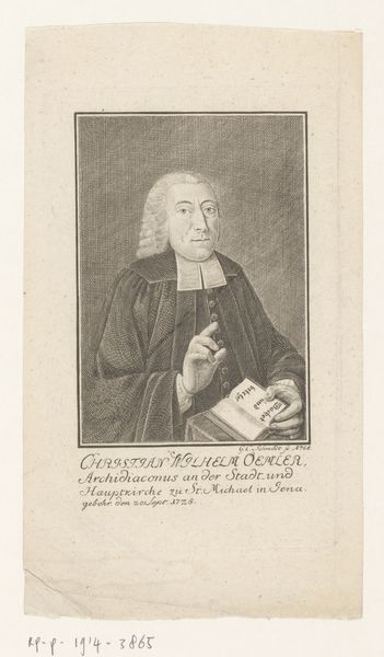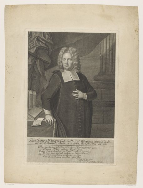 This is Christian Albrecht Wortmann’s ‘Portret van Christian Lehmann,’ created sometime between 1680 and 1760. This portrait immortalizes Lehmann in the visual language of power and intellect. The subject, Christian Lehmann, stands as a figure of authority, his gaze steady and assured. The trappings of his status – the scholarly robes, the meticulously styled wig, and the symbolic backdrop of books – speak to his position within the 18th-century social hierarchy. Lehmann was a prominent theologian and church leader, suggesting that this image served to reinforce his authority within his community. Consider, though, the subtle ways identity is constructed here. Lehmann's vestments denote a separation, a symbolic distancing from the everyday. The portrait operates within established conventions but consider the role that images play in either perpetuating or challenging societal norms. How might we, as viewers, engage with such historical representations, acknowledging their power, and limitations?