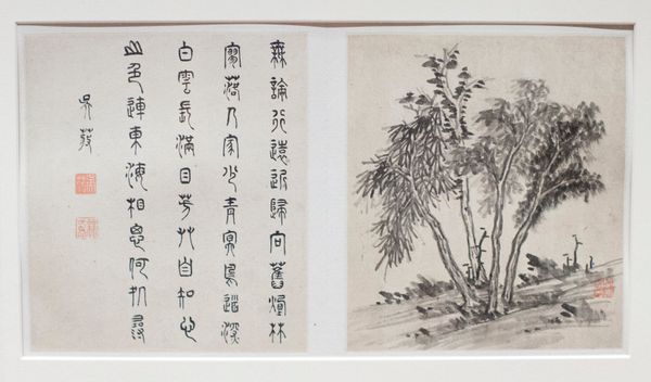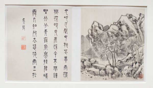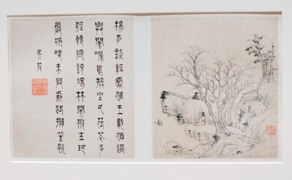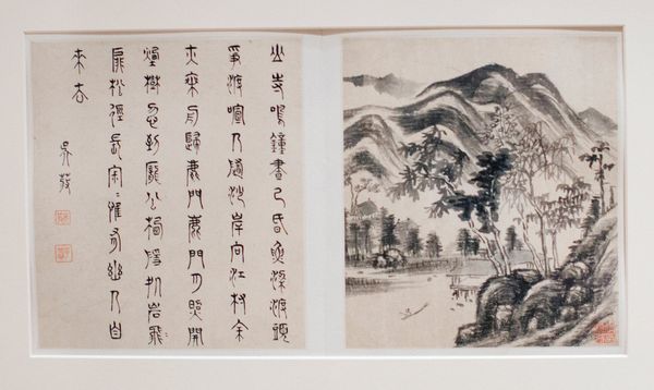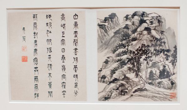Curator: These are two album leaves, dating back to 1621, from a landscape album by Li Liufang. They are executed in ink on paper, currently residing here at the Minneapolis Institute of Art. Editor: There's a powerful serenity in these compositions. The soft greys against the blank paper evoke a misty landscape. It makes me wonder about the stories embedded within it, what experiences might have shaped it. Curator: Li Liufang was a prominent figure of the late Ming Dynasty. What intrigues me is the method; he often directly referenced earlier artists and explored various brushwork styles within one album. The very *making* of these paintings, the conscious choices about technique, becomes a dialogue with tradition. The water source that created the ink that touched this paper! The tools that moved it! These are choices with power. Editor: Exactly. Considering the tumultuous times, a landscape offers not only escape but a visual assertion of enduring values—philosophical reflection on humankind's place in the cosmos in the face of rapid dynastic decline. Were there ecological implications tied to societal decline, and how might we see this landscape interacting with larger concepts of community and state? Curator: Notice the layering in the strokes— it almost looks gestural. But this apparent freedom requires tremendous labor, this skill is gained with repetitive and careful brushstrokes across potentially many earlier failed attempts at this type of rendering. And consider the socio-economic context of artistic production: the materials sourced, the patronage that sustained the artist, the dissemination of these images—were they primarily viewed by an elite circle? Editor: Yes, that resonates. The ink, seemingly homogenous, becomes a powerful signifier. Ink itself becomes imbued with a kind of morality: What did it *mean* to turn towards nature in this way? Or, even, who has the literal *ability* to perform such actions? How can we apply these inquiries in the now? The seemingly simple landscape suddenly opens onto multiple critical horizons! Curator: Seeing them both side-by-side I'm noticing what seems to be two versions of mark making. Are there clear decisions being made in the application? What did the artist want the viewership to recognize and understand about this decision? I now wonder more about the types of labor present in the album. Editor: Absolutely, the album's material presence demands our engagement with layered histories and invites continued exploration, in turn illuminating something vital about ourselves and our relationships with these stories, today.