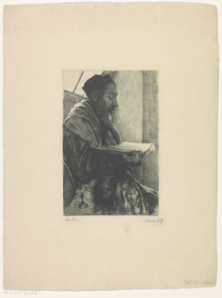 Curator: Albert Hahn's "The Medium," created between 1915 and 1919, captures the figure in charcoal. The dense application of charcoal lends itself beautifully to the stark expressive style we see emerging here. What are your initial impressions? Editor: There’s a palpable sense of heaviness; the sheer density of charcoal almost weighs down the subject. It feels like a study of texture and shadow more than anything else. Look at those hands – rough hewn from dark pigment. I wonder about Hahn’s process. Curator: Observe the restricted palette – limited to the grayscale – and the subtle modulations within. The hands, as you note, are quite striking, functioning as the focal point structurally within the overall composition; this detail offers much when deconstructing the formal dynamic at play here. Editor: Exactly! And those hands…they look overworked. Considering Hahn was known for his socialist leanings, and the probable historical context during which this work was realized, one starts to envision a connection between the medium’s labor-intensive methods and the subject portrayed. Perhaps even as social critique? Curator: Perhaps. Though, to focus solely on social commentary could occlude further engagement. Observe the figure's closed eyes, downturned gaze, the sense of introspection communicated through the manipulation of chiaroscuro, it may also point toward Symbolism. Editor: That's a fair point. And while I tend towards material processes in interpreting such artworks, to solely confine readings according to production disregards symbolic function in cultural interpretation, something key in artistic practices across history. Curator: Precisely. Ultimately, it stands as a rather compelling testament to Hahn’s versatility within the Expressionist mode of representation. Editor: Indeed. Looking closely has underscored not just what Hahn made but also how meaning resides in our interactions with these skillfully rendered materials.