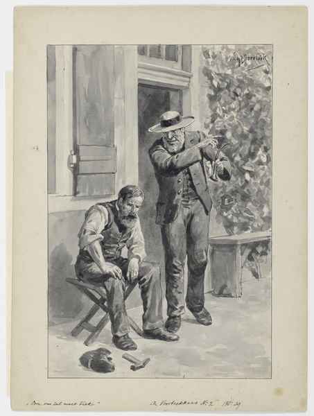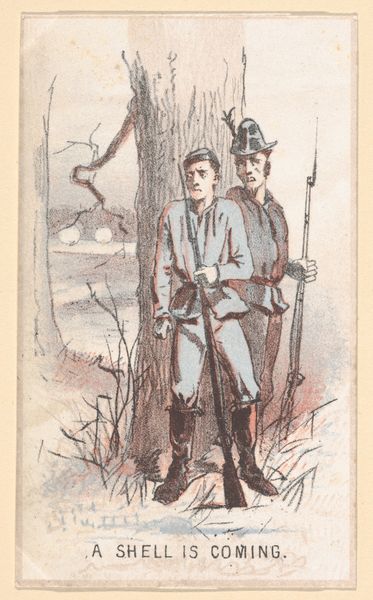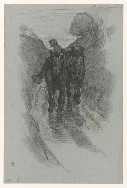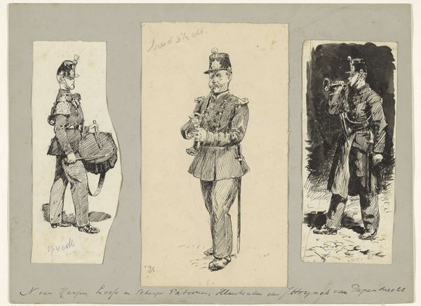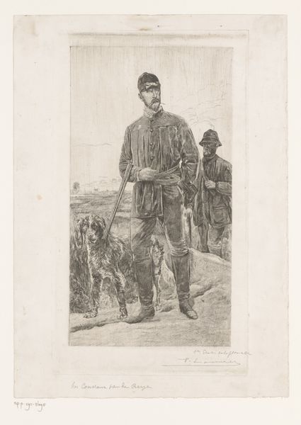 Editor: This is "Carabinieri à Rome" by Etienne Bosch, created before 1931. It’s an etching, so a type of print. It's... intriguing. The two figures seem almost ghostly, like memories fading. What do you see in this piece? Curator: Well, immediately, the figures' uniforms trigger cultural associations – authority, tradition, perhaps even a hint of pageantry. But consider, why *these* figures, at *this* time? Are they symbols of order and stability, or something else entirely? Look closer: do the faces strike you as heroic? Or is there a certain... blankness? Editor: Blankness, definitely. Their faces are quite generic, almost like masks. The feathery plumes on their hats make me think of peacocks, associated with pride… but there is something sad here, perhaps their pride is brittle. Curator: The 'mask-like' quality resonates strongly. We often imbue uniforms with meanings exceeding the individuals wearing them. The Carabinieri –symbols of Rome itself - become icons here. Consider the cultural memory: what did uniformed figures *mean* to viewers then, and what might they signify today? Has that symbolism shifted? Editor: That's a powerful point! Back then, it could be perceived as patriotic imagery, maybe a sense of security. Now, perhaps more complicated – a symbol of state power and the ever-present tension between order and freedom. I had not considered how etching these in an ‘unfinished’ way adds to the ghostliness. Curator: Indeed. By studying such details we can grasp not only the conscious intention but also the undercurrents – the collective anxieties and aspirations – that shaped this work. This is the beauty of iconography; that even the most seemingly straightforward images can open into rich and complex layers of meaning. Editor: It's amazing to consider all these different angles! It makes the etching so much richer than I first thought. Curator: Exactly! And that's what keeps us coming back to art –the endless potential for new understandings.