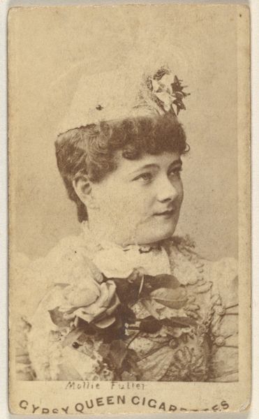 This chromolithograph, made around 1890 by W. Duke, Sons & Co. features Daisy Murdock dressed as "Cupid" for a series of cigarette cards. These cards, tucked into cigarette packs, offered consumers glimpses into popular culture and societal ideals, often reflecting and reinforcing the norms of beauty and femininity of the time. Murdock’s portrayal as Cupid, the god of love, intersects with the historical context of the late 19th century, a period marked by rigid gender roles and expectations. This image perpetuates the ideal of women as emblems of beauty and romance. Yet, within its confection of hearts and arrows, there lies a negotiation of power. Murdock, through her confident gaze, seems to subtly challenge the passive role typically assigned to women in such depictions. It is a reminder of how even seemingly innocent commercial art can reveal the complex interplay between identity, representation, and societal values. It asks us to consider the gaze, the power, and the unspoken narratives embedded within such seemingly simple images.