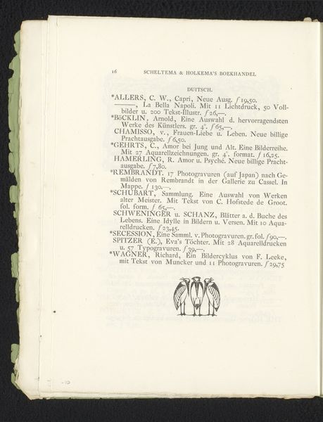 Editor: Here we have Gerrit Willem Dijsselhof's "Titelhoofd met pauwen," made between 1893 and 1894. It's a drawing, using pen and ink, very much in the Art Nouveau style. The symmetry is really striking, with the peacocks flanking the title. What draws your eye in this work? Curator: I see a piece deeply rooted in its time. Think about the late 19th century and the rise of industrial production. This drawing, made with relatively simple materials, embodies the ideals of the Arts and Crafts movement which countered mass production. Editor: How so? Curator: The deliberate, handcrafted nature of the pen and ink medium is important. It highlights the labor involved, and its starkness sets it apart from mechanized printing processes. This isn't just about representing peacocks; it's about the act of creation, pushing back against the alienation of labor during that period. Where do you think these were printed? Editor: Perhaps a small print shop, with the craft and care echoing Dijsselhof’s aesthetic? It makes the image seem less like a mass-produced poster and more like a unique, valuable artifact. Curator: Exactly. This piece, originally a poster, encourages a specific form of consumption - one that values artistry and mindful creation, not cheap replication. The social context becomes embedded within the materiality of the piece. So, do you think about the impact that the Arts and Crafts Movement have during the Belle Époque? Editor: I see your point. Looking at it this way reveals how this elegant drawing, beautiful as it is, is making a statement about how things are made, valued, and consumed. Curator: And understanding that material and process brings us closer to grasping the core values this piece embodies.