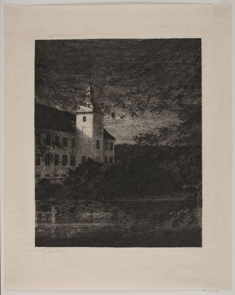 This is ‘Huis Rooswijk’, an etching made by Barthold Willem Floris van Riemsdijk in 1916. Etching involves using acid to cut into a metal plate, which is then inked and printed. In Riemsdijk’s time, this was a well-established medium, deeply intertwined with the rise of capitalism. Etchings could be reproduced in multiples, making art accessible to a wider audience. Notice how the fine, precise lines of the etching capture the architecture and surrounding landscape. The texture of the trees, the reflections in the water, and the details of the building are all meticulously rendered. This attention to detail speaks to the artist's skill and the labor involved in creating the image. The process is labor intensive and demanding. Ultimately, understanding the materials and methods used in 'Huis Rooswijk' allows us to appreciate the skill and effort involved in its creation, and to reflect on the relationship between art, labor, and society.