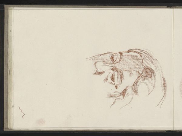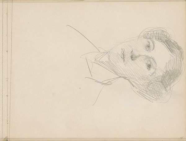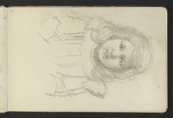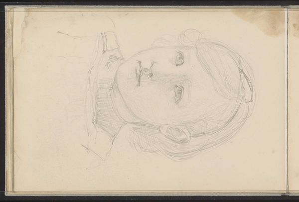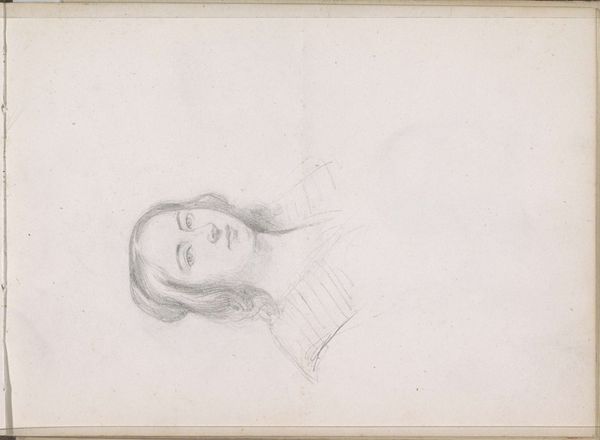 Curator: Welcome. Before us we have “Meisjeskop,” or “Head of a Girl,” a pencil drawing on paper created by Jozef Israëls sometime between 1834 and 1911. Editor: There's an arresting directness to this sketch. Her eyes, wide and a little unfocused, create an almost unsettling sense of intimacy with the viewer. It has a quiet, almost melancholic mood. Curator: It's interesting to consider Israëls’ approach to materials here. The quick, almost hesitant pencil strokes reveal the process itself. We're seeing not just a finished portrait but also the very act of its creation. This immediacy was undoubtedly valued at the time. Editor: And looking at the social context, this piece invites consideration of gender and childhood within 19th-century Dutch society. The girl’s apparent innocence and vulnerability – captured so candidly – might reflect societal views about female fragility. Was it a depiction, perhaps romanticized, of purity? Curator: The loose lines also hint at Israëls’ broader involvement in the Hague School, an artistic movement focused on realism and scenes of everyday life. Was this study part of a larger project focused on depicting working-class families and individuals? This could elevate those previously invisible lives to the canvas. Editor: Indeed. Given Israëls' focus on Jewish life and subjects of poverty, it’s difficult not to read her gaze through the lens of vulnerability experienced by marginalized communities in that era. How does the artwork make visible certain power dynamics? Does her slightly tilted head function as passive surrender, or something else? Curator: Those are compelling observations! Understanding the availability of materials also offers insights. Pencil and paper were easily accessible, which allowed artists a new type of portability and quick study; this contrasts greatly with more laborious mediums such as oils or even bronze sculpture. Perhaps this drawing existed only as preparation for a final piece rendered in oil paint on canvas. Editor: It’s equally important to ponder upon these drawings not just as preparatory studies but also as art objects in their own right. We're left to question their emotional resonance independent of function, to acknowledge the girl as a singular, sentient subject worthy of empathy, or outrage, regardless of completion or polish. Curator: That’s a key point to reflect on, ultimately. Examining the materials and modes of production leads us back to consider how it represents individuals within complex power structures and social milieus. Editor: Absolutely. And thinking about who had access to create, display, or collect images like these prompts us to question established historical canons and consider inclusivity more consciously.