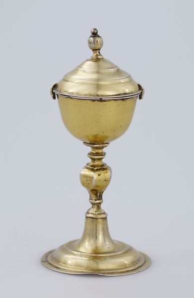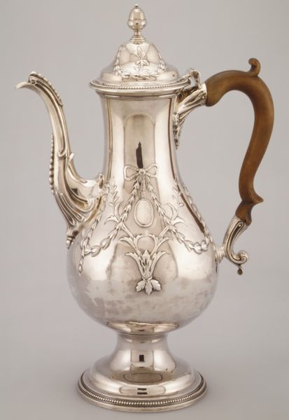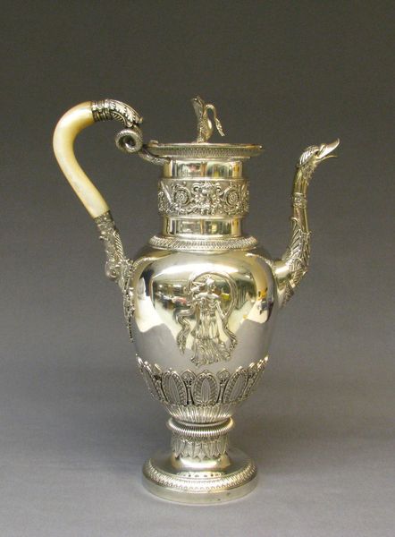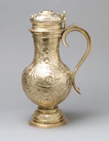 Editor: This is a facsimile of a pitcher made around 1710-1720 in Nuremberg. It feels weighty, regal, and maybe even a little intimidating. What kind of stories do you think it holds? Curator: Indeed. Notice how the craftsman deliberately evokes earlier forms – classical urns, perhaps? It's a cultural memory, a deliberate reaching back to imbue the object with authority and lasting power. What emotions does the patina evoke in you? Editor: It feels like age and history, but almost a tarnished glory. Is that intentional, or just the passage of time? Curator: Both, I suspect. The tarnishing speaks to the inevitable decay of all things, but the craftsmanship continues to tell a story. The pitcher becomes a symbol of resilience and continuity. Editor: So even imperfections can become part of the meaning? I never thought of it that way. Curator: Precisely! It's a reminder that even in decay, beauty and meaning can be found, enriching the object's story, inviting us to reflect on our own relationship to time and legacy.