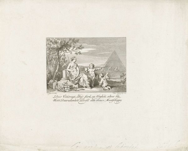 Curator: Here we have "The spirits of William of Orange, Prince Maurits and Michiel de Ruyter watch over the defenders of the Seven Provinces on the borders", a print made between 1831 and 1840, credited to Willem Charles Magnenat. It’s currently held in the Rijksmuseum collection. Editor: My first impression is a powerful sense of stillness juxtaposed with brewing conflict. There's a stark contrast between the spectral figures overseeing the camp and the palpable sense of apprehension emanating from the guards clustered around the fire. Curator: Let’s consider the engraving itself as a material object. Prints like this served to disseminate specific historical narratives, shaping public opinion and fostering national identity through easily reproducible imagery. The lines are incredibly detailed for the period, almost photographic in capturing expressions, landscape elements and the soldiers' attire. Editor: Exactly. Look how the artist uses those detailed lines to imbue these historical figures with a distinct symbolic weight. William of Orange, Maurits, and de Ruyter, presented almost as guardian spirits, legitimize the current military efforts by connecting them to a glorious past. That distant burning cityscape serves as a constant reminder of potential consequences. Curator: It speaks volumes about the Romantic era’s obsession with national history and heroic narratives. By choosing printmaking, the artist engaged with the accessibility and affordability of images, consciously inserting this vision of national pride into the public domain. I find myself wondering about the engraver's labor – the intense focus and repetition involved in carving this scene onto a plate, multiplied in each impression struck. Editor: The scene certainly constructs a particular visual rhetoric. The iconography emphasizes Dutch naval prowess and military vigilance, framing it all within a landscape tinged with uncertainty. That single boat crossing from left to right really brings to light how fragile borders can be. Curator: Yes, and by emphasizing those figures of leadership from the past, the engraving encourages a continuation of patriotic ideals among viewers of the 1830s, reminding them of the material sacrifices that safeguard sovereignty. Editor: I’ve gained a fresh perspective appreciating how layered historical symbolism gets expressed here within this black and white landscape. Curator: Indeed. It truly underscores how even a "simple" print encapsulates complex relationships between artistic production and nationalistic narratives.