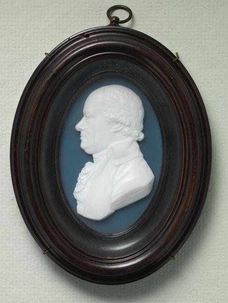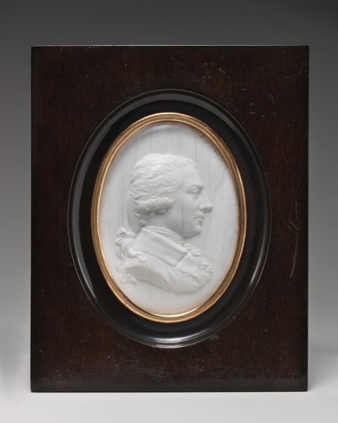 Editor: Here we have Johann Heinrich Schepp's marble relief, "Portretmedaillon van Prins Willem van Oranje, de latere Koning Willem I," dating to 1784. It feels very…stately, but also a bit small and precious. What's your take on this piece? Curator: As a materialist, I’m drawn to the conditions of its production. Marble, of course, suggests wealth, access to resources and skilled labor. The artist, Schepp, and his patron were actively involved in material transformations, embedding political power within the very stone. How do you think the choice of marble contributes to the message? Editor: It definitely gives it a sense of permanence and importance, more than if it were, say, plaster. Curator: Exactly! The meticulous carving of the relief also speaks to the labor involved. We must consider the social context; this wasn't just a portrait, it was a political object, an early form of mass media almost, to shape public image and reinforce power structures through widespread reproduction and circulation of the image. Editor: So, it’s not just a pretty picture. It has a purpose, practically speaking, even as a luxury object? Curator: Precisely! And consider the consumption aspect – who acquired these medallions? What messages did they convey within their homes? They functioned almost as branding. This Neoclassical style itself connects to other cultural movements which tied back to the mode of production. It goes beyond surface appearances; it represents intricate relationships between power, material, and the labour invested in creating and circulating such objects. Editor: That makes me look at it completely differently now. It's not just a portrait, it's about power, labor, and how they all come together in the art itself. Curator: It reveals so much when we examine its construction and cultural circulation.
