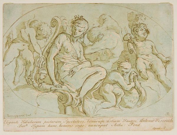 Editor: We’re looking at "Galatea and Acis with Polyphemus who is about to kill Acis out of Jealousy," a drawing whose artist and date are unknown, here at the Art Institute of Chicago. I’m struck by how this moment of impending violence is rendered with such delicate lines; the figures almost float. What do you see in this piece? Curator: Ah, it's like catching a glimpse into a half-remembered dream, isn't it? Those fluid lines – they don't just describe a scene; they convey a feeling. It’s the raw emotion, the drama of the myth unfolding. The jealousy feels almost palpable despite the classical composure. Do you notice how Polyphemus is poised? It's rage and sorrow swirling together, a beautiful kind of tragic poetry if I might be so bold to say so. Editor: The “half-remembered dream” quality is definitely present. What do you make of the lack of specificity in details? Is the emotional depth a function of this abstractedness? Curator: Precisely. The drawing is more focused on evoking feelings than illustrating a specific historical event, even though the mythological inspiration anchors the work. You can tell by the movement suggested with ink and chalk that it's aiming to make you *feel* the legend, not simply observe it. Don’t you feel almost complicit in their romantic hideaway? Editor: I think I do. This really casts new light on how I perceive even incomplete or anonymous artwork as carrying tremendous depth. Thanks for sharing your thoughts! Curator: And thank *you* for joining me on that plunge, perhaps an equally jealous plunge! Now to look for my own nymph to guide...