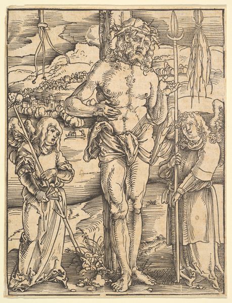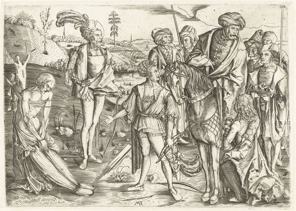 Giovanni Bellini's small panel painting, "Four Allegories: Falsehood (Wisdom)," presents us with a perplexing scene rendered with oil on wood. The figures are arranged with a serpentine dynamic, their poses creating an almost choreographed sense of movement, yet the overall tone remains enigmatic and solemn. Bellini masterfully uses the composition to explore the duality of appearance and reality. The figures and snake create a diagonal composition, an artistic strategy to destabilize established meanings and values of Renaissance art, creating a sense of unease and ambiguity. The careful brushstrokes and muted color palette add to the somber mood, inviting contemplation rather than providing clear answers. The figures appear to carry the weight of knowledge, burdened by what it reveals. Bellini challenges us to question the nature of wisdom and its potential burdens. It is a visual essay on the complex relationship between knowledge, morality, and the human condition. It reflects broader artistic and philosophical concerns. Bellini’s formal decisions regarding line, composition, and color, function not just aesthetically but as part of a larger cultural and philosophical discourse.