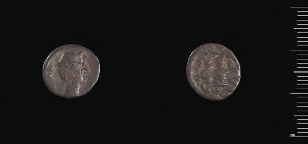 Curator: At the Harvard Art Museums, we have a Denarius of Septimus Severus. Editor: It looks worn, almost ghostlike. The metal's texture speaks of immense age and handling. Curator: This coin offers a direct link to Septimus Severus, a Roman emperor whose reign significantly shaped the empire. Editor: The relief is quite fascinating; I am intrigued by the technical skill required to render such detail on such a small, compact form. Curator: Exactly, and the imagery served a purpose: imperial propaganda, solidifying his image and authority across a vast and diverse populace. Editor: Considering the coin’s size, the density of information and craftsmanship is impressive. It really makes you reflect on power, doesn't it? Curator: Indeed, and on the enduring nature of symbols in shaping our understanding of history.