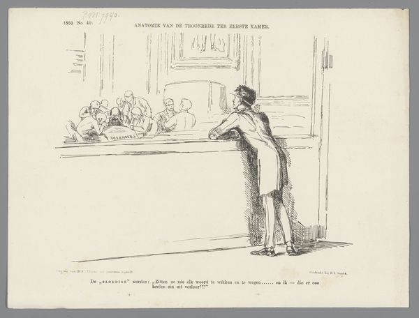 This print, made in 1870 by Johan Michaël Schmidt Crans, captures a moment of irony within the hallowed halls where Rembrandt’s “Night Watch” hangs. The image, rendered in ink, offers a pointed commentary on the state of cultural heritage. In the scene, we see museum attendants tending to a smoking stove, oblivious to the damage their actions inflict upon the masterpiece looming behind them. Here, Crans critiques the perceived negligence in caring for national treasures, literally obscuring the legacy of Dutch art with a cloud of smoke. This satirical portrayal speaks volumes about the cultural priorities of the time, questioning whether the appreciation of art truly aligned with its preservation. The print invites us to consider the value we place on art and the stories it tells about our collective identity, asking who is responsible for safeguarding cultural memory. It is a poignant reflection on the tensions between present needs and the preservation of the past.