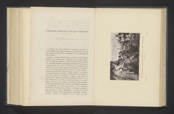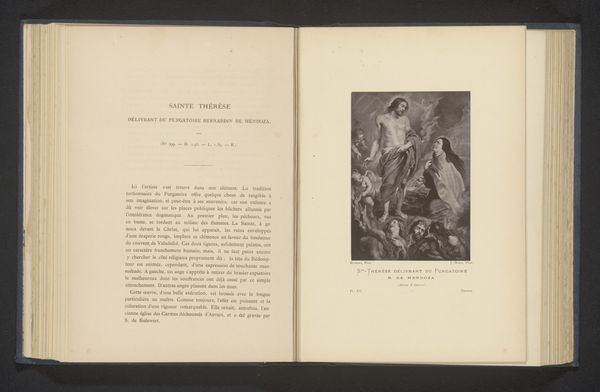 Curator: This image presents "Reproductie van De Bewening van Christus door Anthony van Dyck," a print made before 1877 after a work by Anthony van Dyck, focused on the Lamentation of Christ. The use of engraving brings such starkness, doesn't it? Editor: Yes, the heavy contrast gives it an intense, almost tragic feel. How would you interpret the engraving in relation to Van Dyck's original painting? Curator: The crucial aspect here is to acknowledge how the materials of printmaking shift the dynamics. The translation from paint to engraving involves a whole different labour process. The social context, therefore, moves beyond purely religious considerations to consider the engraver's role as artisan and interpreter, and how prints facilitated wider distribution of such images, affecting accessibility and consumption patterns. Do you see how the reproduction detaches the image from its unique art object status and situates it within a new framework of accessibility? Editor: I think so. So, the print makes the image more accessible, moving it from an exclusive object for the wealthy, to something circulated and consumed by more people, highlighting its economic value in some way? Curator: Precisely. This intersects with issues of labor, consumption, and the dissemination of cultural capital. Consider the social role of prints, their connection to early forms of mass media, and the economies that propelled their production. How does that affect our reading of its emotional impact? Editor: So, rather than solely focusing on religious interpretations, we can analyze the social context surrounding its production and distribution. I never considered that. It makes me see prints, engravings and other reprographic techniques in a new light. Curator: Exactly, now we start appreciating these prints and recognizing how they reshaped the consumption and understanding of images.