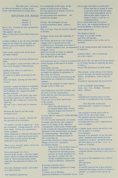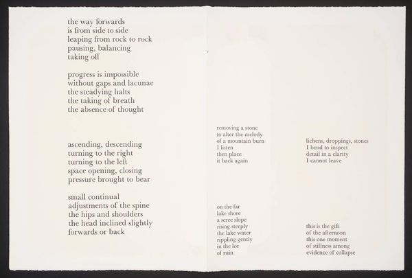 Editor: This untitled print by Eduardo Paolozzi presents dense blocks of text, almost like concrete poetry. The overall effect is quite overwhelming. What do you see in this piece? Curator: I see a reflection of post-war anxiety and technological advancement. Paolozzi often incorporated mass media imagery and text into his work, questioning the impact of these forces on society. This dense layering suggests the overwhelming nature of information in the modern world. Consider the Cold War context, the rise of consumerism – how does this imagery speak to that era? Editor: So, it's not just about the words themselves, but about the overall visual impact and the questions it raises about society. Curator: Precisely. Paolozzi's work often challenged the traditional role of art, pushing it into the realm of social commentary. Editor: That's a perspective I hadn't considered. Thanks! Curator: My pleasure.
