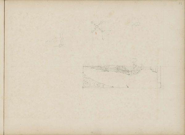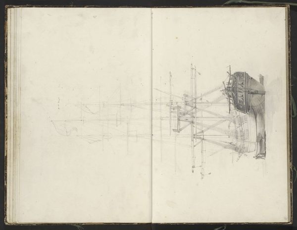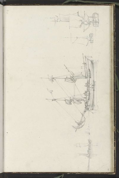 This page of sketches by Johannes Christiaan Schotel, found in the Rijksmuseum, presents us with a study in maritime forms. The artist's pencil teases out the complex geometries of sailing ships. The composition invites us to consider the structure of these vessels, focusing on their abstract shapes. Schotel uses line to define the skeletal framework of masts and rigging. Notice how each shape occupies its own space yet is related to another through a network of lines. This creates a sense of depth and volume while remaining firmly rooted on the flat surface of the page. The repetitive use of linear elements in the construction of each ship recalls early Cubist experiments with fragmented forms. The arrangement of sketches on the page suggests a dialectic between the detailed and the suggestive, prompting us to question the role of observation in art. Is it about recording or interpreting? Perhaps both.