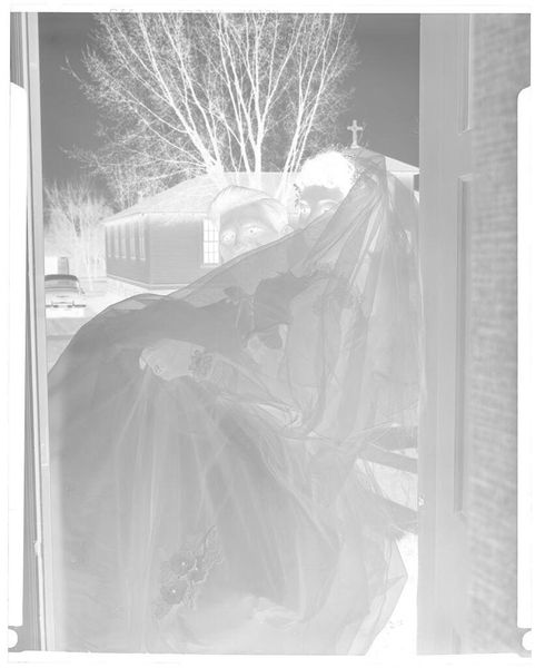 Editor: This photographic negative, "Untitled (boy in house taking photograph out window)" by Lucian and Mary Brown, is quite striking. The contrast between indoors and outdoors is so sharp. How do you interpret the act of photographing here, given the limited perspective? Curator: It really makes you consider the power dynamics inherent in the act of observation, doesn't it? The boy, presumably with some level of privilege, is capturing an image of the external world from within a domestic space. What does it mean to frame nature, to possess it through an image? Editor: So, it's not just about the boy and the camera, but also about the act of claiming ownership through photography? Curator: Precisely. Consider the historical context – who had access to cameras, whose stories were told, and whose were silenced. This image becomes a microcosm of broader societal structures. Editor: That completely changes how I see it. I never considered the social implications of a simple snapshot. Curator: Art invites us to question everything.