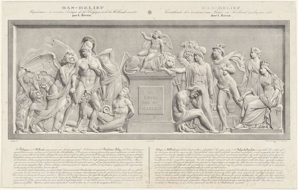 This unbound print, titled "Moeder met kind, Venus en Mars, Maria Magdalena, badende vrouw en drinkende paarden" was created by Firmin Gillot. Gillot lived in a time of significant social change in France. His print presents a series of vignettes referencing historical, mythological, and biblical narratives. We see images of motherhood, love, religious penitence, and pastoral life. The drawing of Mary Magdalene invites contemplation on themes of female repentance and redemption, echoing the long history of women being held to different moral standards than men. Gillot challenges viewers to reconsider traditional interpretations and reflect on the societal expectations imposed upon women. The juxtaposition of these scenes creates a layered exploration of identity, inviting us to reflect on the complex roles individuals assume within society and the stories we tell about ourselves.