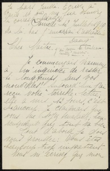 This letter was written in 1919 by Rose Imel. The slightly faded ink has a lightness to it, like watercolour, full of gentle curves and flicks. It reminds me that writing, like painting, is a process of building up marks to create form. Up close, you can see how Imel’s pen has scratched and bitten into the paper, each letter alive with a kind of shaky energy. The words huddle close together, almost overlapping, creating a tight-knit texture that feels intimate, like a whisper. Notice how the ascenders and descenders loop and dance, pushing beyond the ruled lines of the page, breaking the grid a little. It’s this tension between order and chaos that gives the letter its particular rhythm. This makes me think of Cy Twombly, who also treated language as a kind of raw material to be shaped and sculpted. Art, like language, is always a conversation, a back-and-forth between different voices and perspectives. And like any good conversation, it's the pauses, the hesitations, and the moments of uncertainty that make it truly interesting.